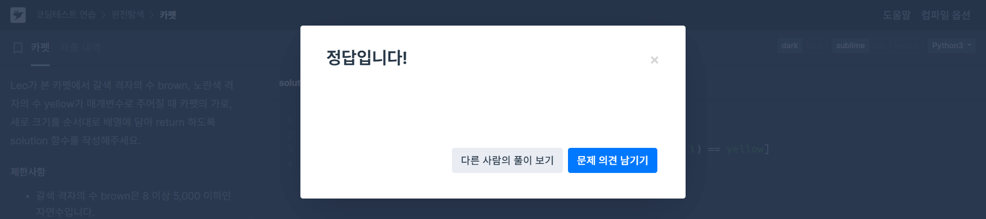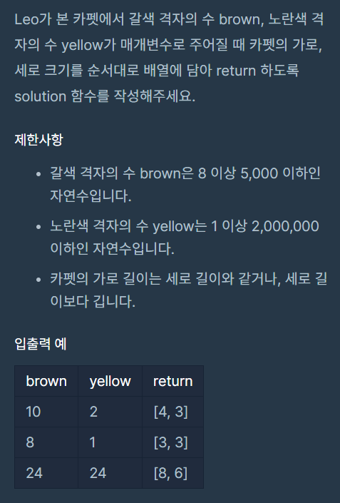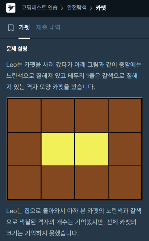프로그래머스: 카펫 (링크)