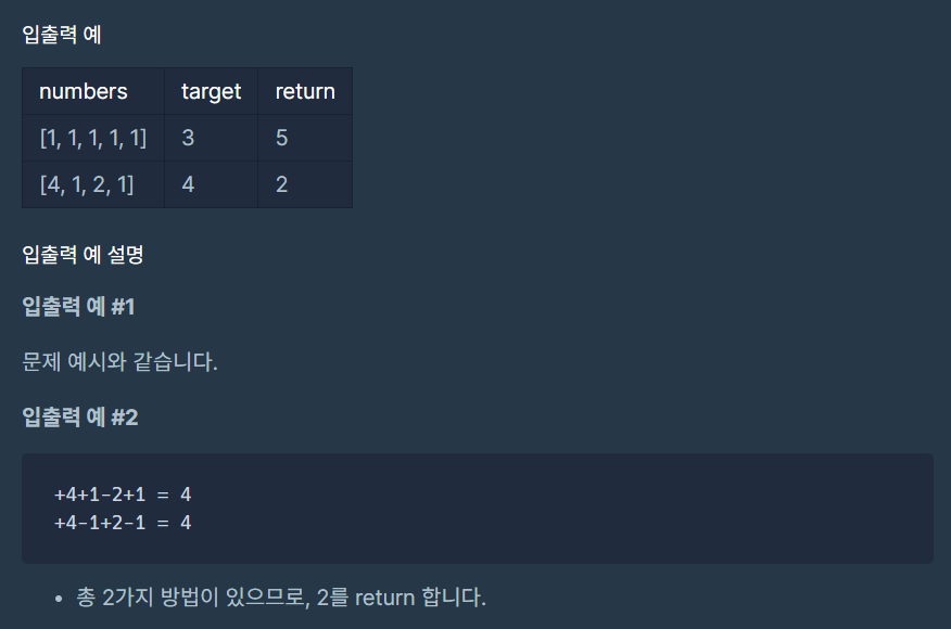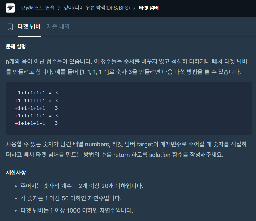 타겟넘버 문제를 bfs와 dfs를 이용해서 풀어봤다. 아래 나오는 코드들은 다 모든 테스트케이스를 통과한 코드이다!