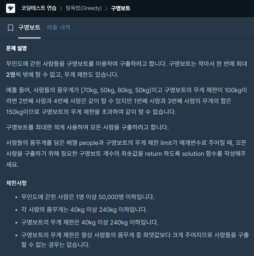 [스파르타] 99클럽 2기 코테스터디 17일차 TIL / 구명보트 본문
