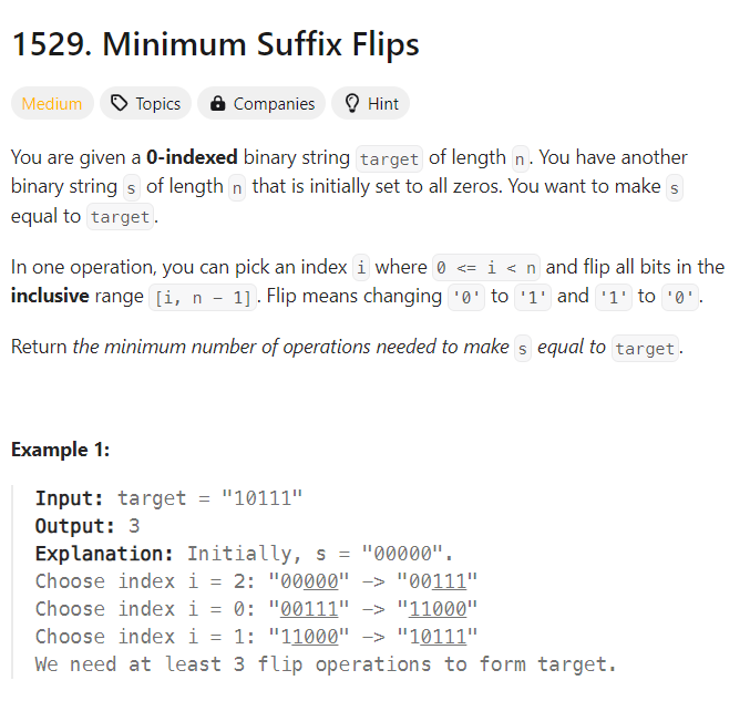 Leetcode: 1529. Minimum Suffix Flips (링크)