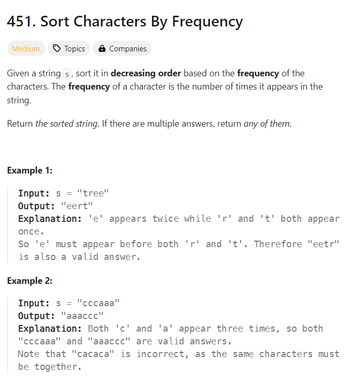 Leetcode: 451. Sort Characters By Frequency (링크)