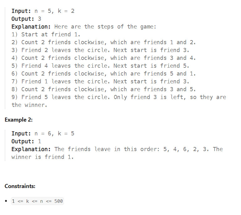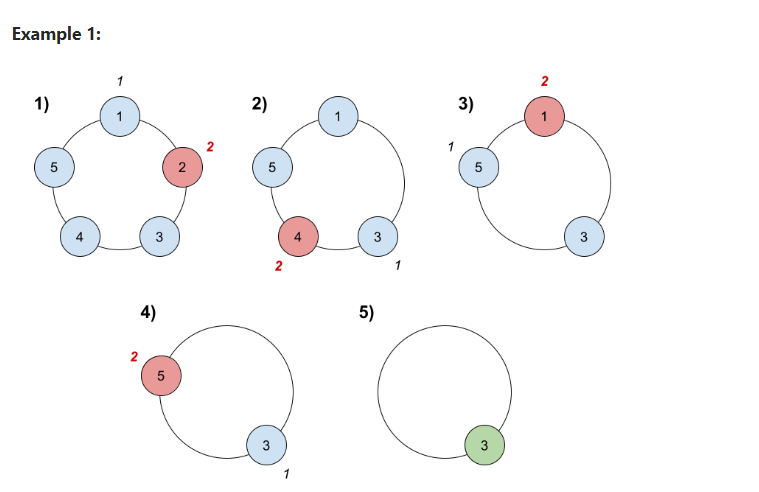 Leetcode: 1823. Find the Winner of the Circular Game (링크)