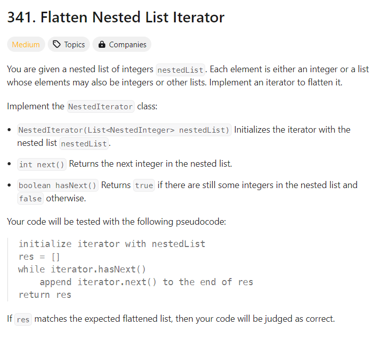 Leetcode: 341. Flatten Nested List Iterator (링크)