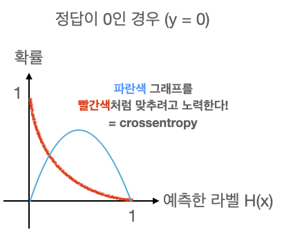- 확률분포그래프 차이를 감소시킬 때는 Crossentropy라는 함수를 이용함.