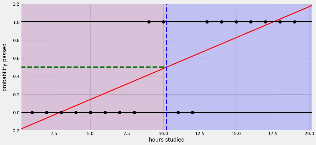 - 초록색 선을 threshold라고 부름. 여길 넘기면 1(통과) 아니면 0(탈락)으로 출력.
